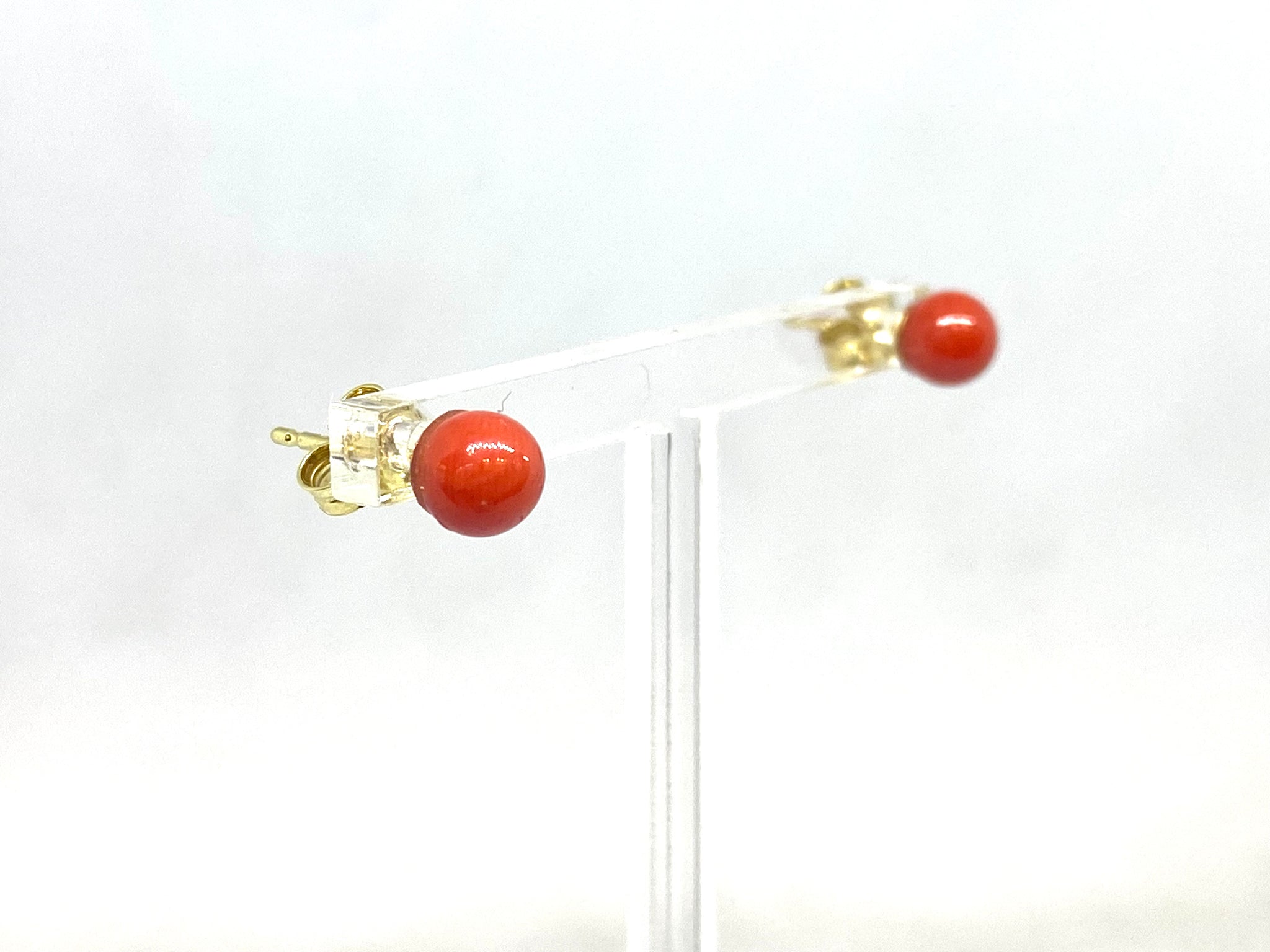 Orecchini in Argento 925, placcati in oro 18kt, con palletta di Corallo naturale mm5. L’argento è nikel free, anallergico.
