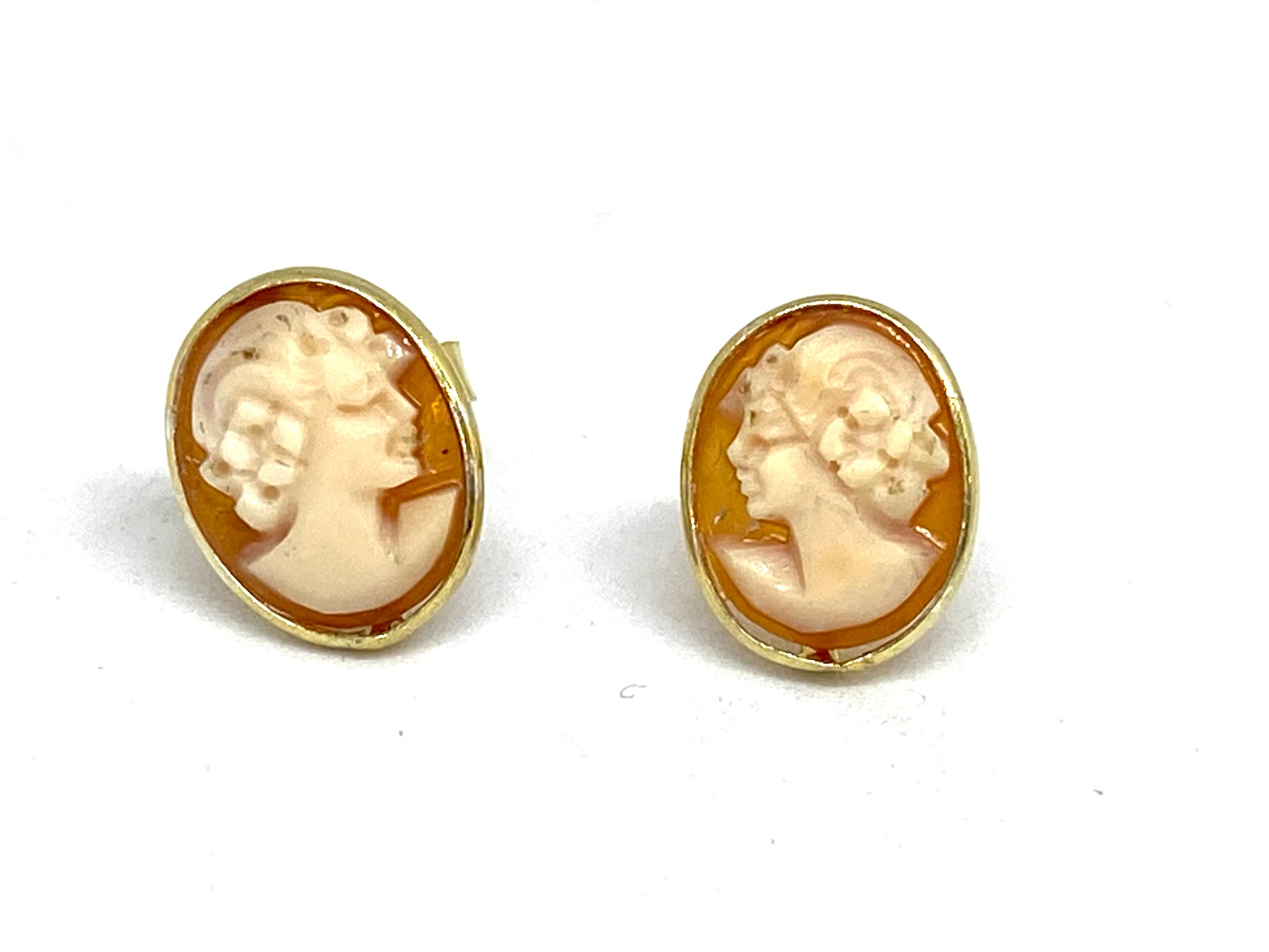 Orecchini in Argento 925, placcati in oro, con Cammeo su conchiglia originale. Argento nikel free, anallergico. Il Cammeo è realizzato a mano, la misura è cm 1,00 x 0,8.